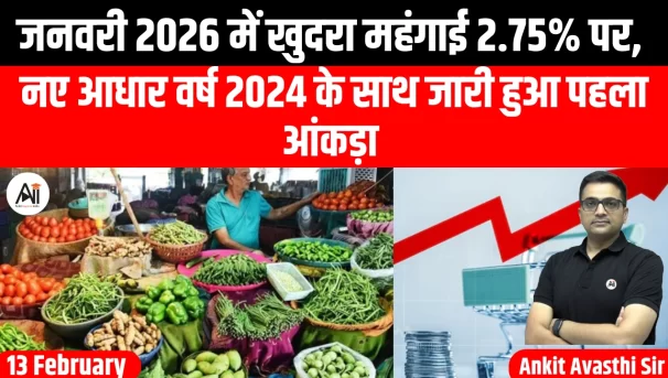 भारत में खुदरा महंगाई (Retail Inflation) दर जनवरी 2026 में बढ़कर 2.75% दर्ज की गई है। यह आंकड़ा उपभोक्ता मूल्य सूचकांक (Consumer Price Index – CPI) की नई श्रृंखला (Series)