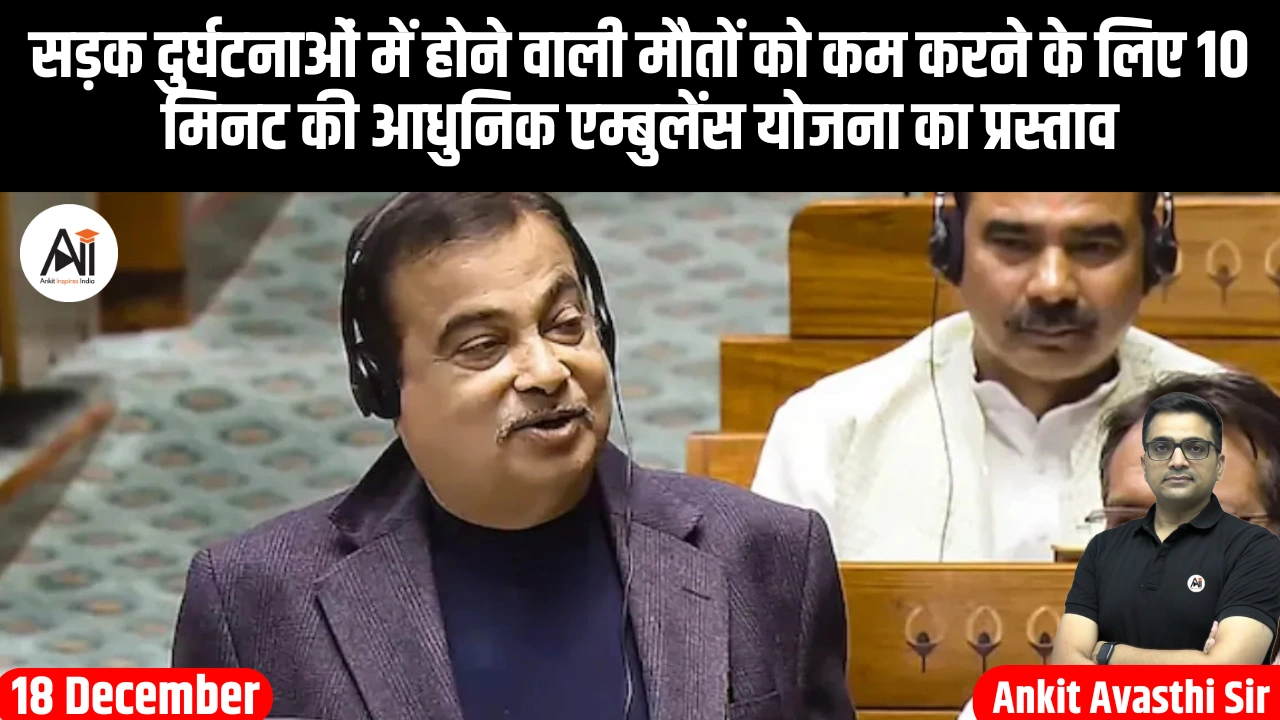 हाल ही में, केंद्रीय सड़क परिवहन एवं राजमार्ग मंत्री ने जानकारी दी कि सरकार सड़क दुर्घटनाओं में होने वाली मौतों को कम करने और लोगों की जान बचाने के लिए एक व्यापक 10 मिनट की आधुनिक एम्बुलेंस योजना विकसित कर रही है। यह व्यापक योजना भारत में आपातकालीन चिकित्सा सेवा और सड़क सुरक्षा में सुधार लाने की एक विस्तृत रणनीति का हिस्सा है।