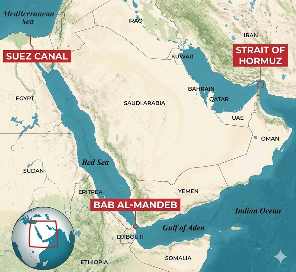 इस रास्ते से गुजरकर जहाज आगे Suez Canal तक पहुंचते हैं, जो एशिया और यूरोप के बीच सबसे छोटा और तेज समुद्री मार्ग है। इसलिए यह इलाका सिर्फ तेल ही नहीं, बल्कि पूरी दुनिया के व्यापार के लिए बेहद जरूरी है।