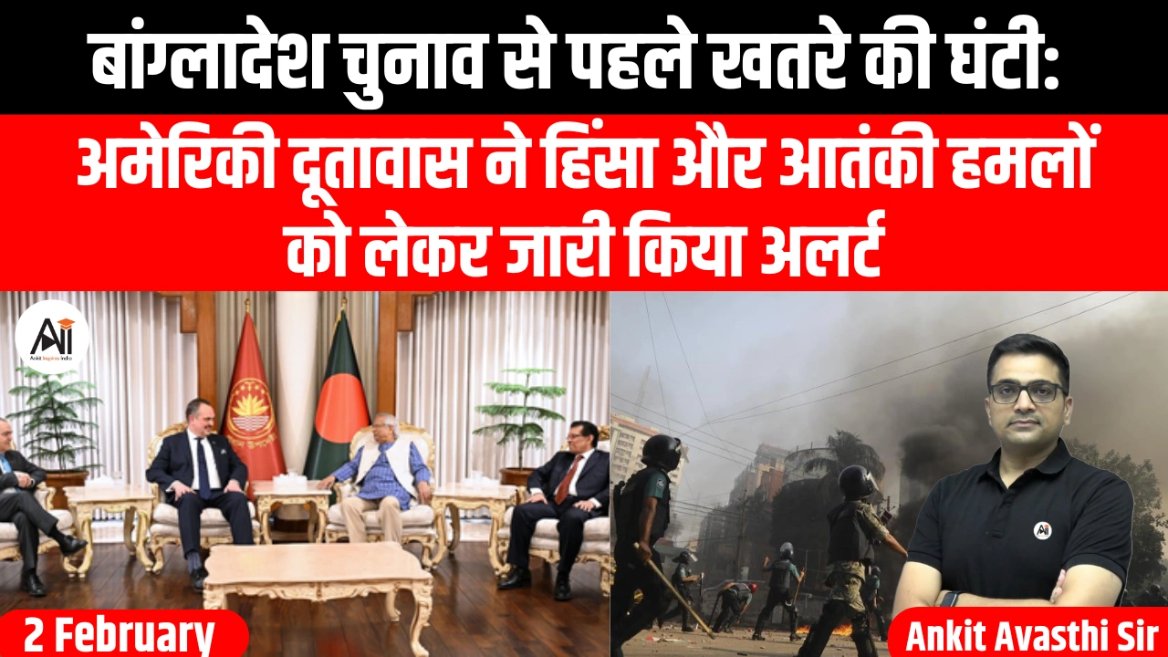 दक्षिण एशिया के महत्वपूर्ण देश बांग्लादेश में होने वाले आम चुनाव और राष्ट्रीय जनमत संग्रह से पहले राजनीतिक माहौल लगातार तनावपूर्ण होता जा रहा है। इसी पृष्ठभूमि में ढाका स्थित अमेरिकी दूतावास ने अपने नागरिकों के लिए एक सुरक्षा चेतावनी जारी की है। इस चेतावनी में आगामी चुनावों के दौरान “राजनीतिक हिंसा” और “चरमपंथी हमलों” की आशंका जताई गई है। अमेरिकी दूतावास ने स्पष्ट रूप से कहा है कि चुनावी रैलियों, मतदान केंद्रों और धार्मिक स्थलों को संभावित निशाना बनाया जा सकता है।
