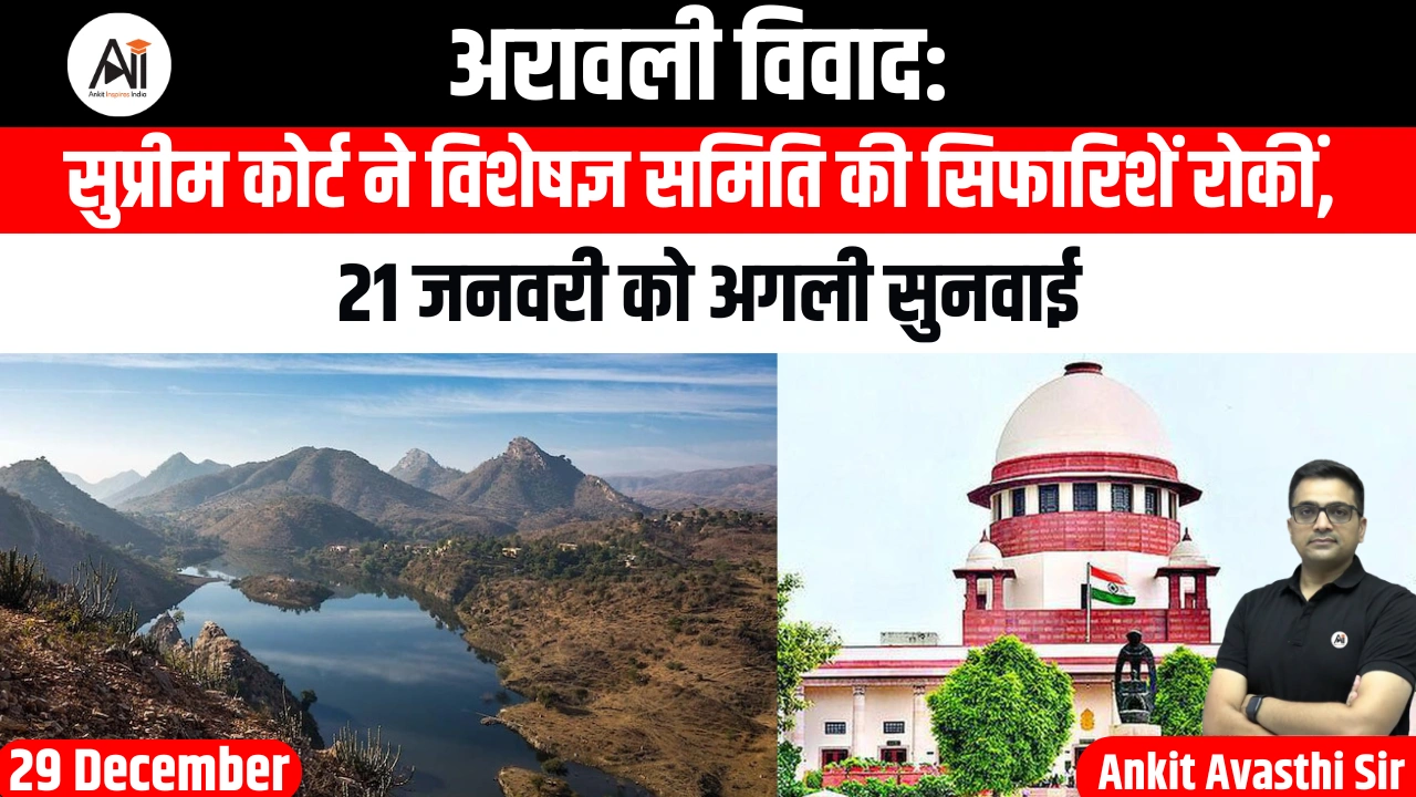 अरावली पर्वतमाला को लेकर उठे विवाद पर आज (सोमवार) सुप्रीम कोर्ट में सुनवाई हुई। मुख्य न्यायाधीश सूर्यकांत ने आदेश दिया है कि विशेषज्ञ समिति की सिफारिशें और उन पर सुप्रीम कोर्ट द्वारा की गई टिप्पणियां फिलहाल लागू नहीं होंगी। अदालत ने साफ कहा कि अगली सुनवाई तक इन सिफारिशों को लागू नहीं किया जाएगा। मामले की अगली सुनवाई 21 जनवरी 2026 को होगी।
