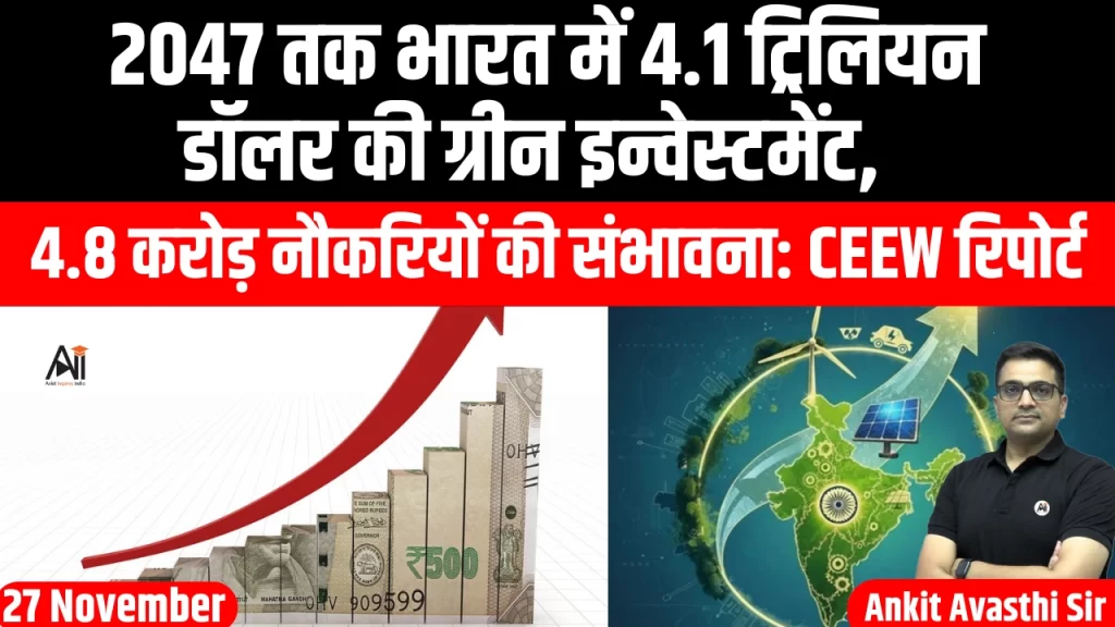 एक नई स्टडी में दावा किया गया है कि भारत 2047 तक 4.1 ट्रिलियन अमेरिकी डॉलर तक की ग्रीन निवेश संभावनाएँ आकर्षित कर सकता है। साथ ही देश में 4.8 करोड़ फुल-टाइम नौकरियों का निर्माण भी हो सकता है। यह...