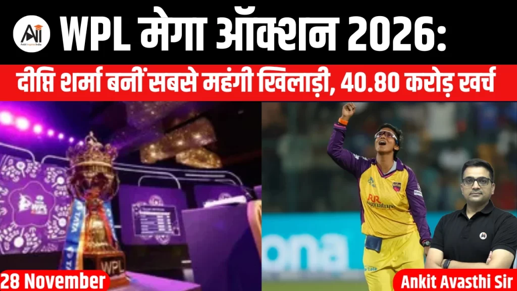 नई दिल्ली के जेडब्ल्यू मैरियट होटल में संपन्न हुए विमेंस प्रीमियर लीग के पहले मेगा ऑक्शन में भारतीय ऑलराउंडर दीप्ति शर्मा ने इतिहास रच दिया। यूपी वॉरियर्स ने उन्हें 3.20 करोड़ रुपए में खरीदकर इस नीलामी की सबसे महंगी खिलाड़ी...