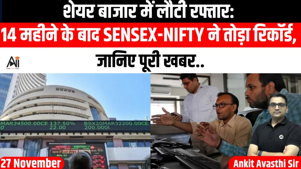 भारतीय शेयर बाजार ने आज यानी 27 नवंबर को जबरदस्त तेजी दिखाई और अपने सर्वकालिक उच्च स्तर पर पहुँच गया, जिससे निवेशकों में उत्साह और विश्वास दोनों बढ़ा है। कारोबार के दौरान निफ्टी 26,310 और सेंसेक्स 86,055 के स्तर तक...