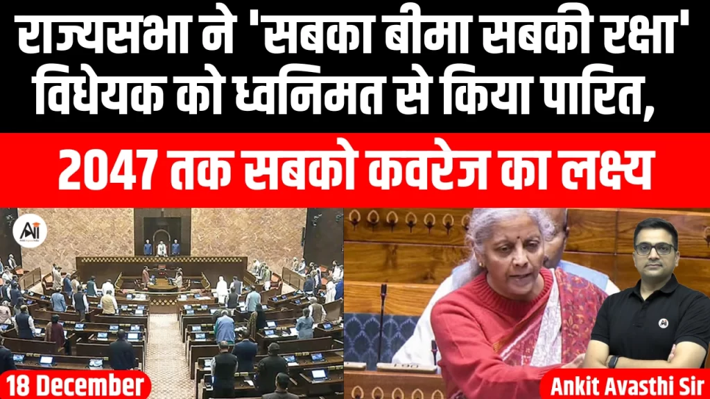 संसद ने बुधवार को बीमा क्षेत्र में विदेशी प्रत्यक्ष निवेश (FDI) की सीमा 74 प्रतिशत से बढ़ाकर 100 प्रतिशत करने वाले महत्वपूर्ण विधेयक को अपनी स्वीकृति प्रदान कर दी। राज्यसभा ने ‘सबका बीमा सबकी रक्षा (बीमा कानून संशोधन) विधेयक, 2025’...