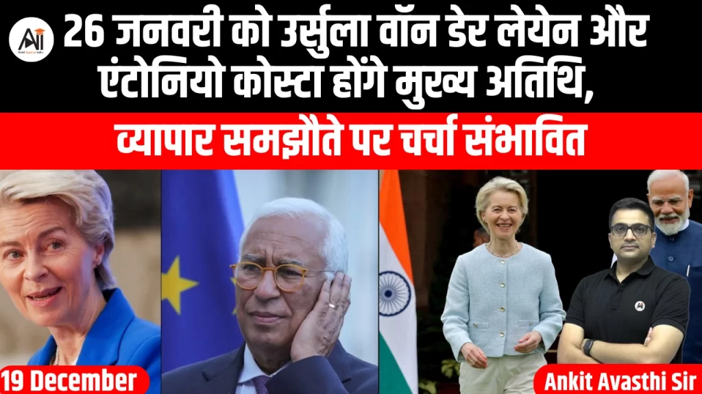 यूरोपीय आयोग की अध्यक्ष उर्सुला वॉन डेर लेयेन और यूरोपीय परिषद के अध्यक्ष एंटोनियो कोस्टा 26 जनवरी को भारत के गणतंत्र दिवस समारोह में मुख्य अतिथि के रूप में शामिल होंगे। प्रधानमंत्री नरेंद्र मोदी और उर्सुला वॉन डेर लेयेन ने...