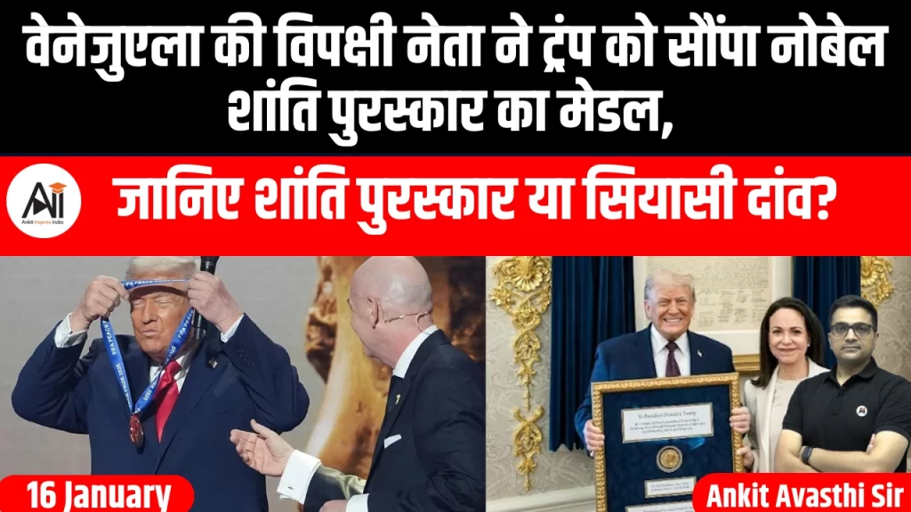 वेनेजुएला की विपक्षी नेता मारिया कोरिना माचाडो ने गुरुवार को कहा कि उन्होंने व्हाइट हाउस में अमेरिकी राष्ट्रपति डोनाल्ड ट्रंप के साथ मुलाकात के दौरान अपना नोबेल शांति पुरस्कार का पदक उन्हें भेंट किया। यह एक अभूतपूर्ण कदम है जो...