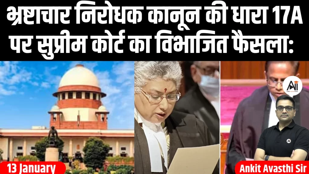संदर्भ : भारत में भ्रष्टाचार से निपटने की कानूनी व्यवस्था एक बार फिर चर्चा के केंद्र में है। मंगलवार को भारत का सर्वोच्च न्यायालय ने भ्रष्टाचार निवारण अधिनियम (Prevention of Corruption Act) की धारा 17A की संवैधानिक वैधता पर विभाजित...