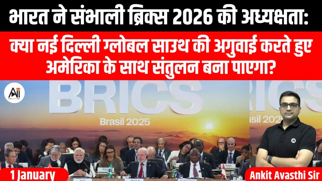 भारत ने गुरुवार को साल 2026 के लिए ब्रिक्स (BRICS) की घूमने वाली अध्यक्षता संभाल ली है, जिससे ग्लोबल साउथ यानी वैश्विक दक्षिण के हितों की वकालत करने की अपनी प्रतिबद्धता को और मजबूत किया है। यह समूह शुरुआत में...