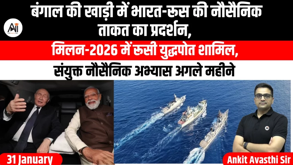 रूस की सरकारी समाचार एजेंसी ने पुष्टि की कि भारत और रूस अगले महीने 15 से 25 फरवरी 2026 तक हिंद महासागर के बंगाल की खाड़ी क्षेत्र में संयुक्त नौसैनिक अभ्यास करने जा रहे हैं। यह अभ्यास भारतीय नौसेना द्वारा...