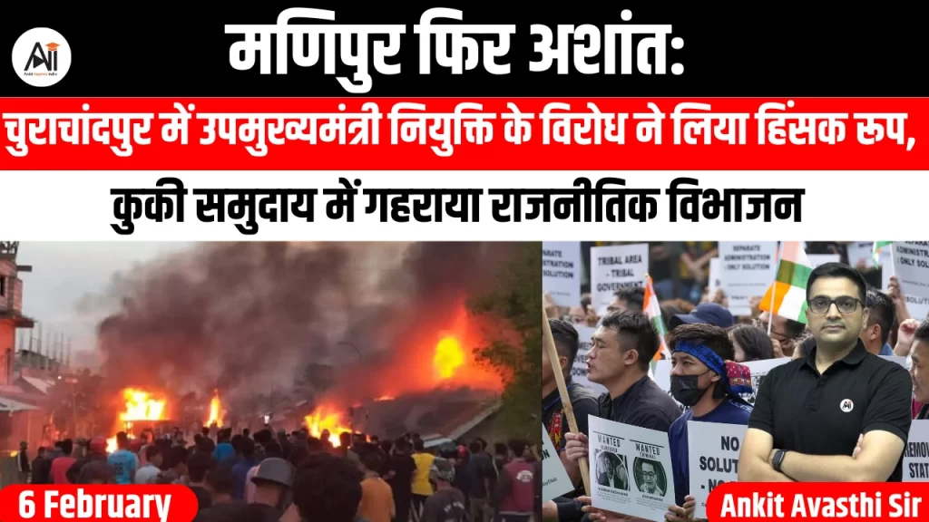 मणिपुर के चुराचांदपुर जिले में गुरुवार शाम हालात अचानक बेकाबू हो गए, जब नई राज्य सरकार में उपमुख्यमंत्रियों की नियुक्ति के खिलाफ शुरू हुआ विरोध हिंसा में बदल गया। कुकी-बहुल इस जिले में नेम्चा किप्गेन और लोसी दिखो के उपमुख्यमंत्री...