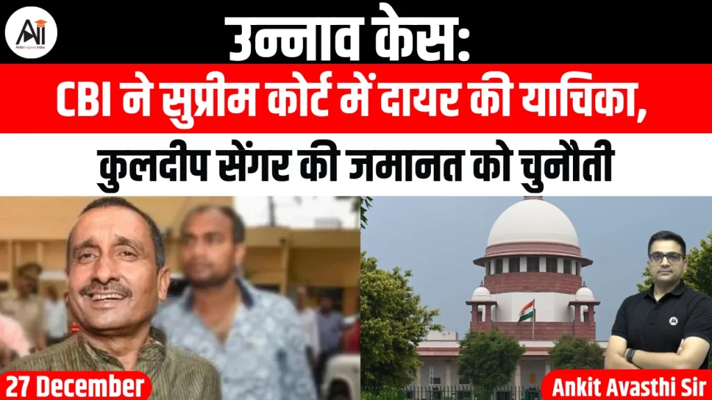 CBI ने शुक्रवार को सुप्रीम कोर्ट में एक विशेष याचिका दायर की है। इसमें दिल्ली हाई कोर्ट के उस आदेश को चुनौती दी गई है जिसमें उन्नाव रेप केस में दोषी पूर्व भाजपा विधायक कुलदीप सिंह सेंगर की आजीवन कारावास...