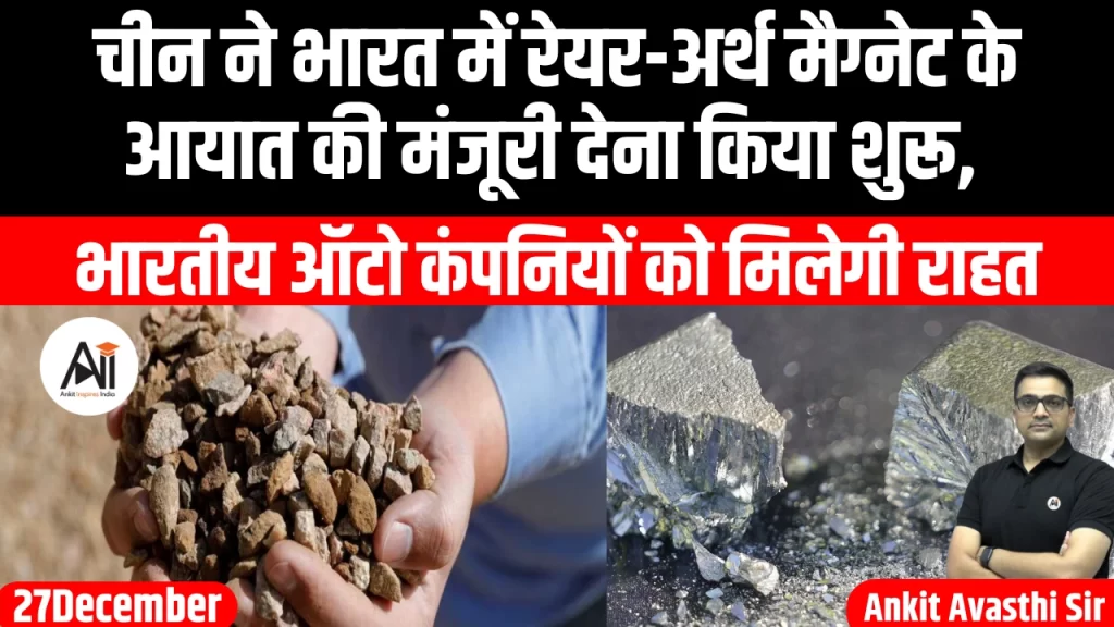 चीन ने भारत में रेयर-अर्थ मैग्नेट (REMs) के आयात के लिए लाइसेंस जारी करना शुरू कर दिया है। बिजनेस स्टैंडर्ड को सरकारी अधिकारियों ने यह जानकारी दी। इस कदम से भारतीय ऑटो निर्माताओं और कंपोनेंट बनाने वाली कंपनियों को राहत...
