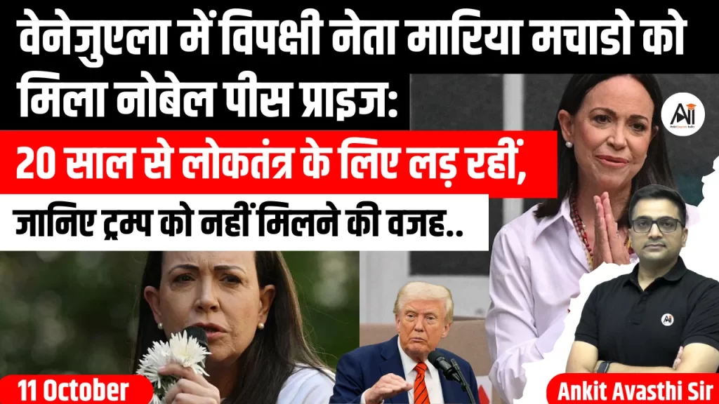 साल 2025 का नोबेल शांति पुरस्कार वेनेजुएला की प्रमुख विपक्षी नेता और औद्योगिक इंजीनियर मारिया कोरीना मचाडो को मिला है। उन्हें यह सम्मान देश में लोकतंत्र की रक्षा, तानाशाही के खिलाफ शांतिपूर्ण संघर्ष, और जन अधिकारों को मजबूत करने के...