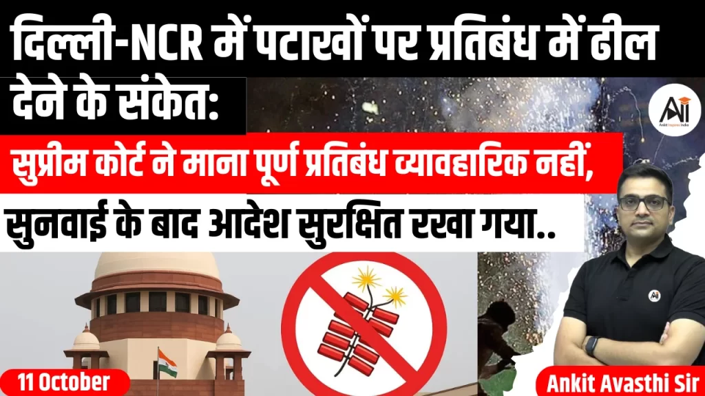 सुप्रीम कोर्ट ने दिवाली से कुछ दिन पहले दिल्ली-एनसीआर में पटाखों पर बैन को लेकर सुनवाई की। अदालत ने कहा कि पटाखों पर पूर्ण प्रतिबंध व्यावहारिक नहीं है और अक्सर इसका उल्लंघन होता है। कोर्ट ने दिवाली पर केवल हरित...
