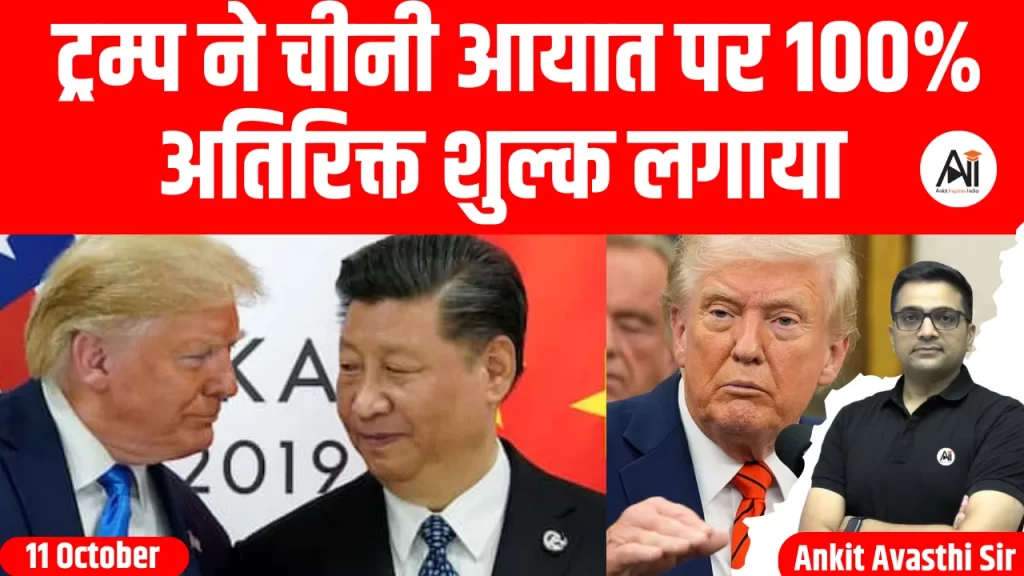 10 अक्टूबर, 2025 को राष्ट्रपति डोनाल्ड ट्रम्प ने अमेरिका-चीन व्यापार संघर्ष के तहत सभी चीनी आयातों पर 100% टैरिफ लगाने की घोषणा की है, जो चीन की कार्रवाइयों के आधार पर 1 नवंबर, 2025 या उससे पहले प्रभावी होगा। चीनी...