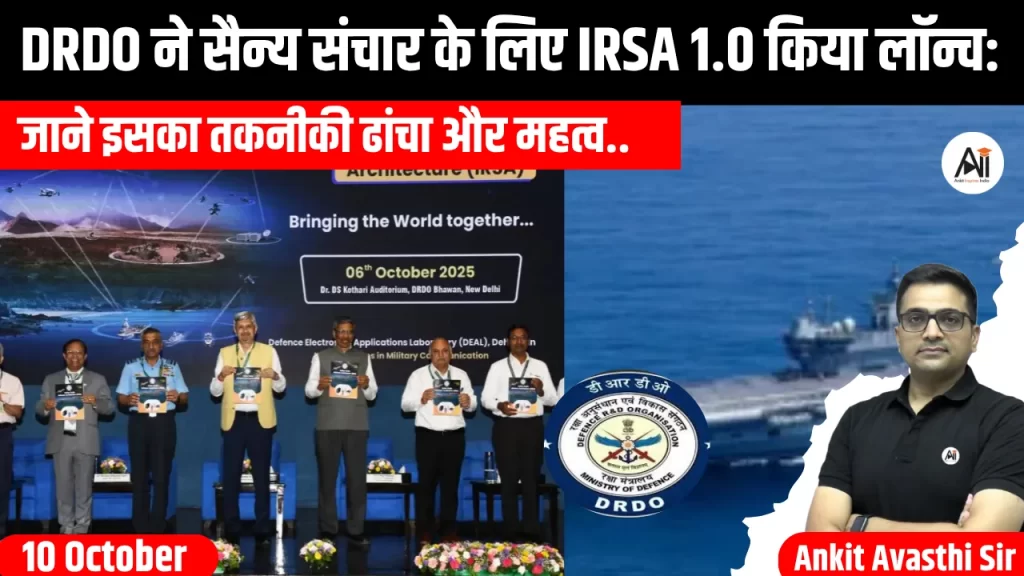 रक्षा अनुसंधान एवं विकास संगठन (DRDO) ने एकीकृत रक्षा स्टाफ (IDS) और तीनों सेनाओं के सहयोग से 6 अक्टूबर 2025 को नई दिल्ली स्थित DRDO भवन में आयोजित एक राष्ट्रीय कार्यशाला के दौरान “भारतीय रेडियो सॉफ्टवेयर आर्किटेक्चर (IRSA)” मानक 1.0...