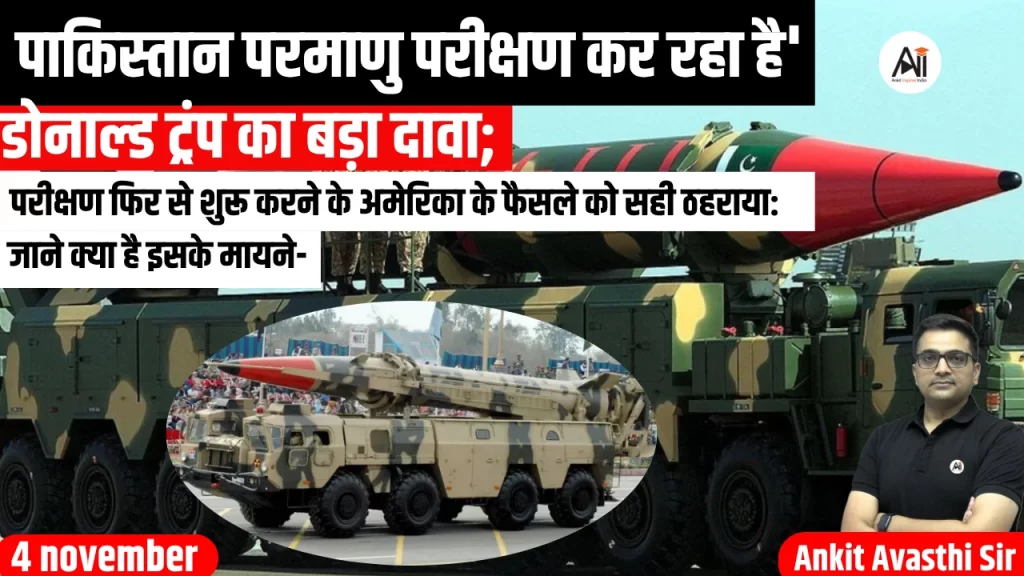 राष्ट्रपति डोनाल्ड ट्रंप ने दावा किया है कि अमेरिका परमाणु परीक्षण करेगा, क्योंकि पाकिस्तान, रूस, चीन और उत्तर कोरिया सहित अन्य देश भी परमाणु परीक्षण करते रहते हैं। उन्होंने यह दावा CBS न्यूज को दिए साक्षात्कार 60 Minutes में किया।...
