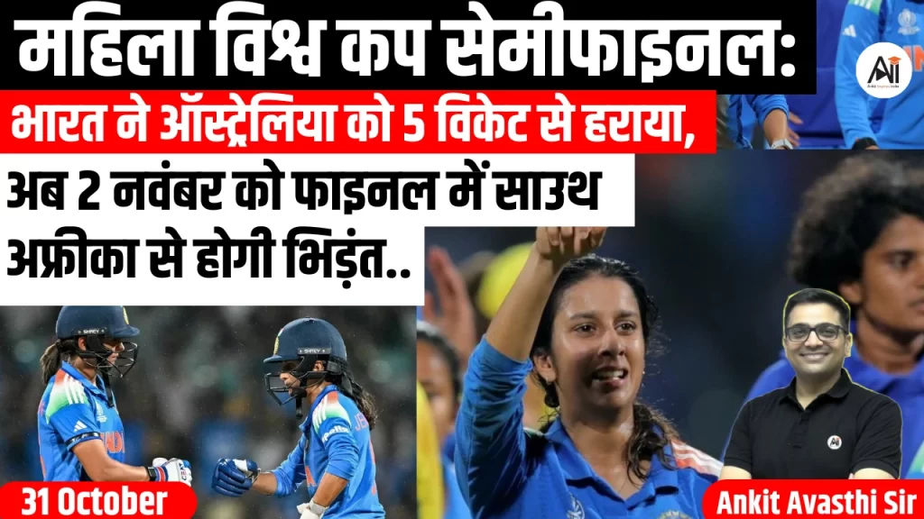 डीवाई पाटिल स्टेडियम में खेले गए ICC महिला विश्व कप के रोमांचक दूसरे सेमीफाइनल में भारतीय महिला टीम ने इतिहास रच दिया। 339 रनों के विशाल लक्ष्य का पीछा करते हुए टीम इंडिया ने ऑस्ट्रेलिया को नौ गेंद बाकी रहते...