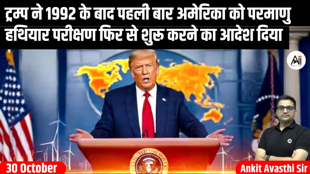 अमेरिकी राष्ट्रपति डोनाल्ड ट्रंप ने बुधवार को परमाणु हथियारों के परीक्षण दोबारा शुरू करने का निर्देश दिया है। उन्होंने कहा कि यह कदम अन्य देशों द्वारा किए जा रहे परीक्षणों के “समान आधार पर” उठाया जा रहा है। इस निर्णय...