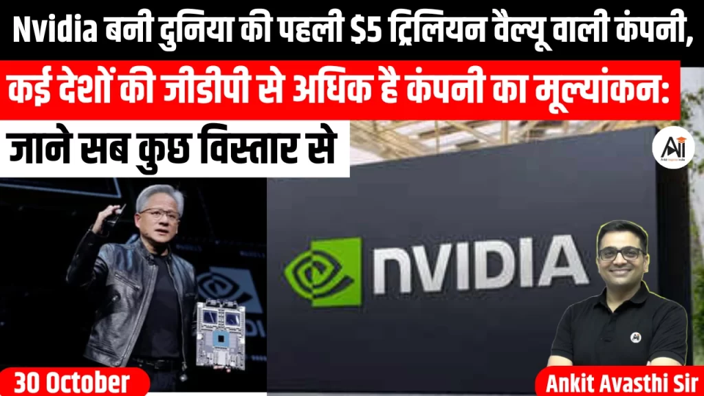 एनवीडिया ने बुधवार, 29 अक्टूबर 2025 को इतिहास रचते हुए 5 ट्रिलियन डॉलर से अधिक के मूल्यांकन (Valuation) का आंकड़ा पार कर लिया। एनवीडिया यह आंकड़ा पार करने वाली दुनिया की पहली कंपनी भी बन गई है। यह उपलब्धि कंपनी...