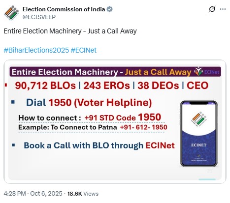 निर्वाचन आयोग ने बिहार के मतदाताओं की सुविधा के लिए चुनावी सेवाओं को आसान बनाया है। बिहार में कुल 90,712 बीएलओ (BLOs), 243 ईआरओ (EROs) और 38 डीईओ (DEOs) नियुक्त किए गए हैं, जिनसे मतदाता सीधे संपर्क कर सकते हैं।