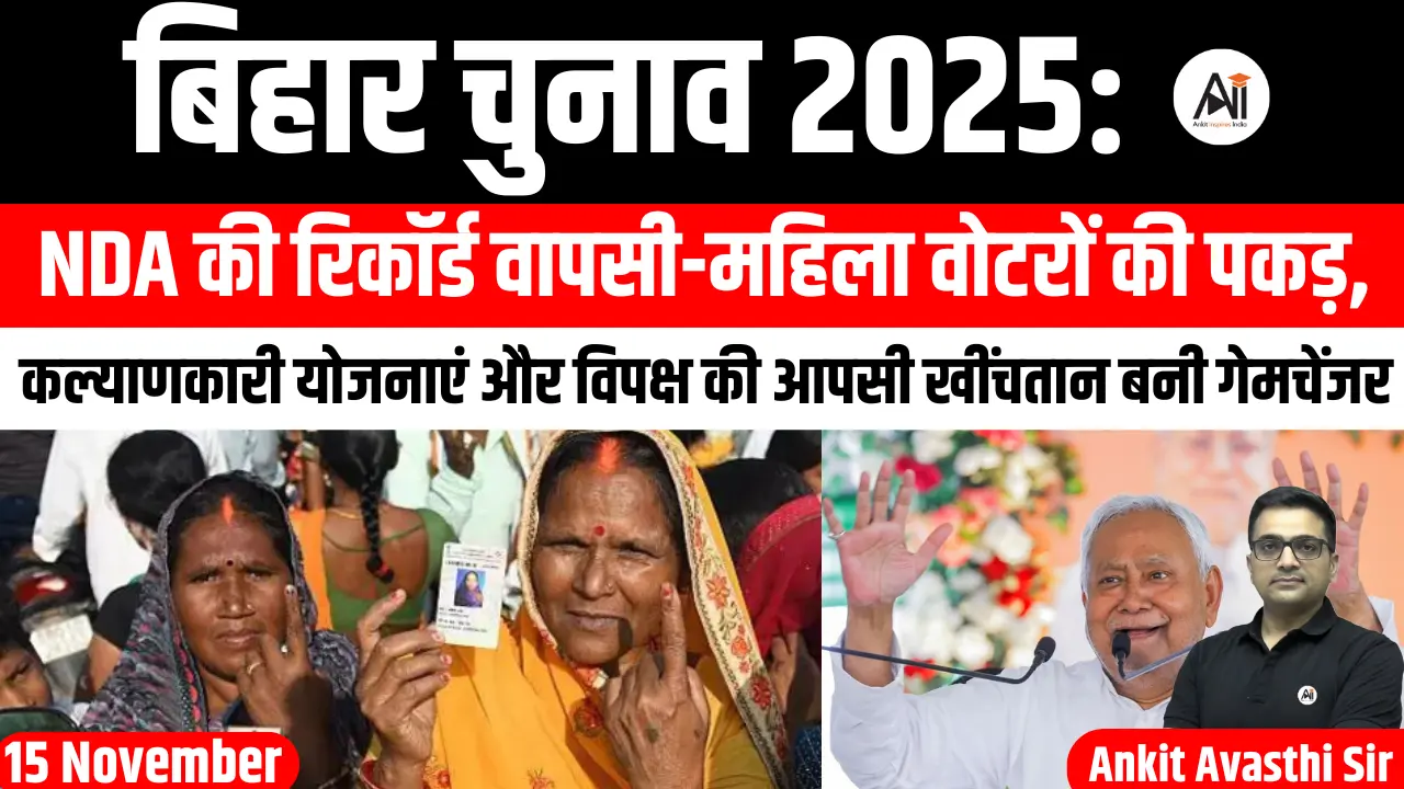 चुनाव परिणामों ने स्पष्ट संकेत दिया कि NDA की जीत केवल नारों, सभाओं और गठबंधन भर का नतीजा नहीं थी। इसके पीछे महिला मतदाताओं की भारी समर्थन, प्रत्यक्ष लाभ वाली योजनाओं की बौछार, जातीय गणित का सटीक इस्तेमाल, और विपक्ष की आंतरिक फूट जैसे कई बड़े कारण थे।