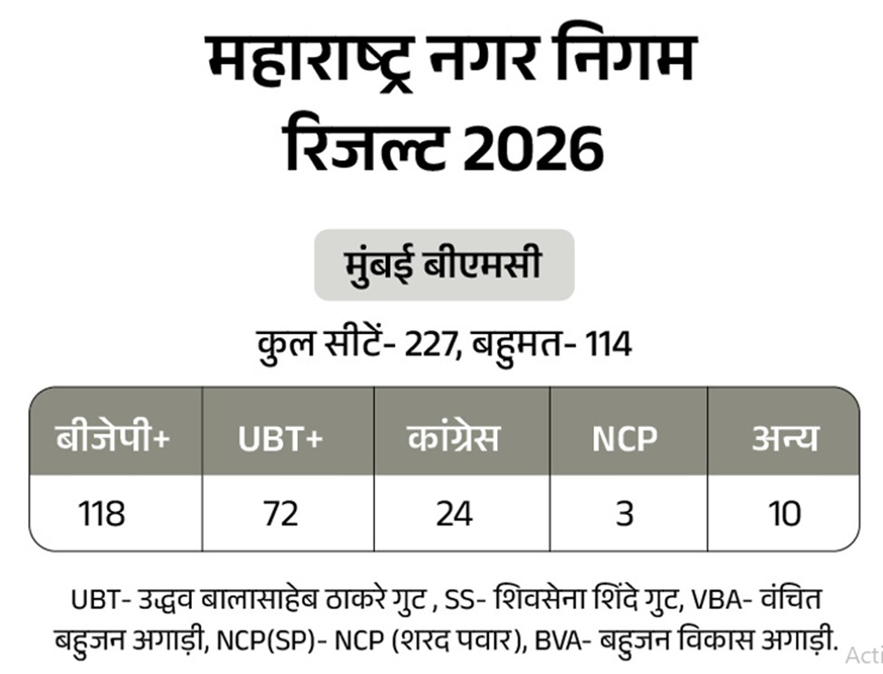 एशिया के सबसे धनी नगर निगम बृहन्मुंबई नगर निगम (BMC) में 25 वर्षों में पहली बार शिवसेना का मेयर नहीं होगा। 227 सीटों वाले BMC में भाजपा-शिंदे शिवसेना गठबंधन ने 118 सीटें जीतीं, जबकि उद्धव ठाकरे की शिवसेना 72 सीटों पर सिमट गई। कांग्रेस को 24 सीटें मिलीं।