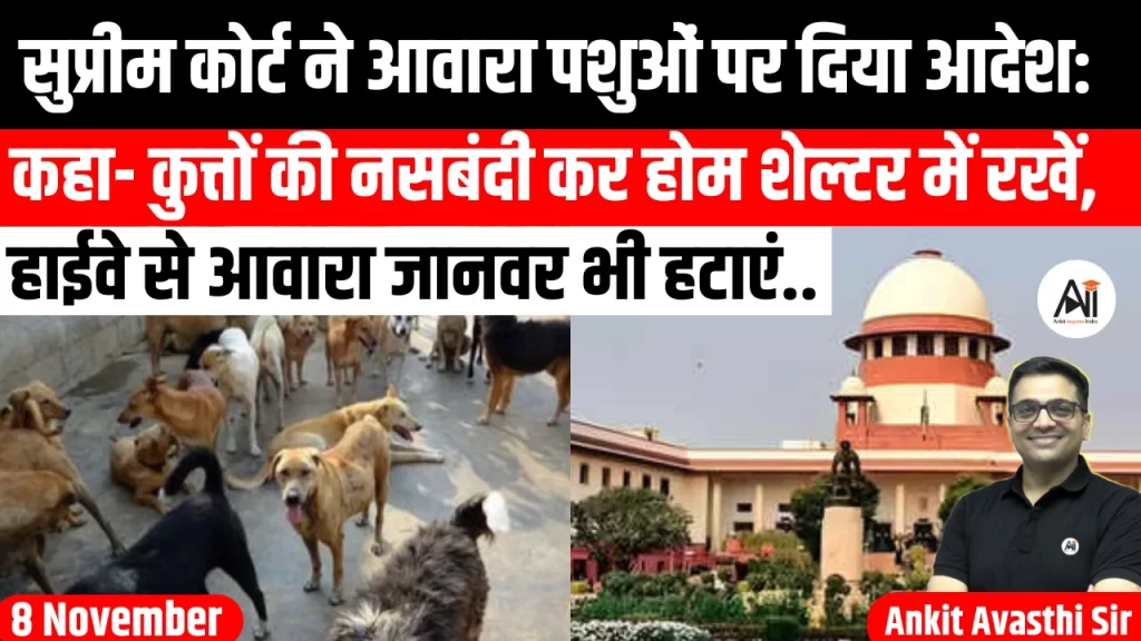 सुप्रीम कोर्ट ने देशभर में बढ़ते कुत्तों के काटने के मामलों पर सख्त रुख अपनाते हुए शुक्रवार को बड़ा आदेश दिया। अदालत ने कहा कि शैक्षणिक संस्थानों, अस्पतालों, खेल परिसरों, बस स्टैंडों और रेलवे स्टेशनों से सभी आवारा कुत्तों को...