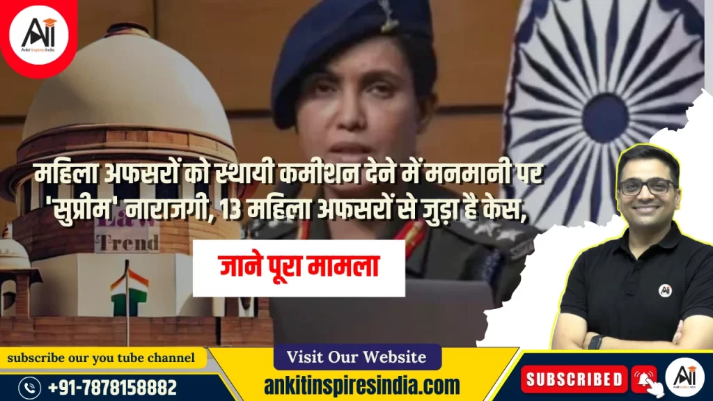 भारतीय सेना में महिला अफसरों को स्थायी कमीशन (Permanent Commission) न दिए जाने का मुद्दा एक बार फिर सुप्रीम कोर्ट में उठा है। यह मामला शॉर्ट सर्विस कमीशन (SSC) की 13 महिला अफसरों से जुड़ा है, जिन्होंने आरोप लगाया है...