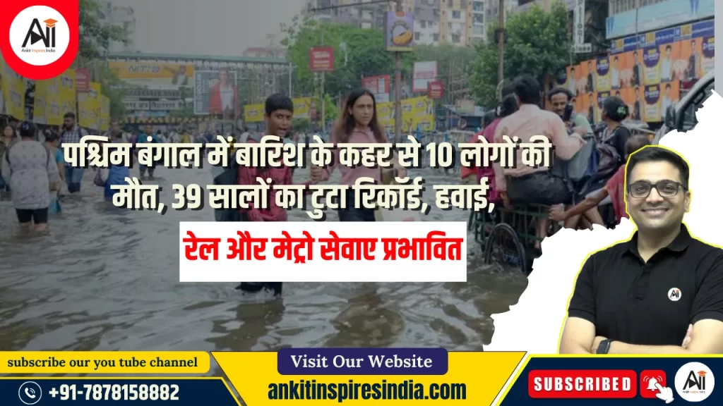 पश्चिम बंगाल की राजधानी कोलकाता और उसके आसपास के जिलों में हुई भारी बारिश ने जनजीवन अस्त-व्यस्त कर दिया है। 39 साल बाद एक दिन में रिकॉर्ड बारिश दर्ज की गई, जिससे अब तक 10 लोगों की मौत हो चुकी...