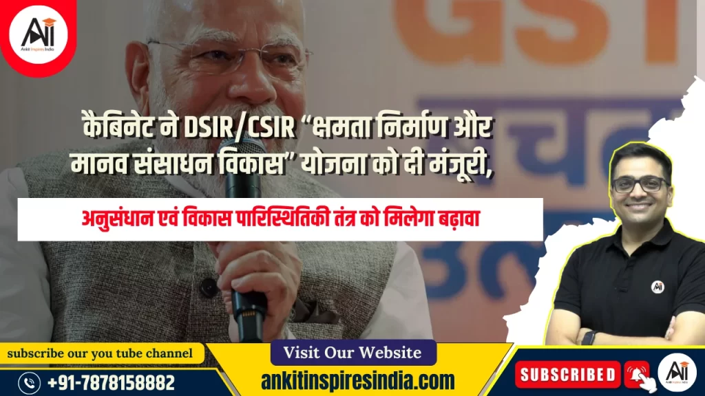 भारत के अनुसंधान और नवाचार क्षेत्र को मजबूत करने के लिए, प्रधानमंत्री नरेंद्र मोदी की अध्यक्षता में केंद्रीय मंत्रिमंडल ने वैज्ञानिक एवं औद्योगिक अनुसंधान विभाग (DSIR) की ‘क्षमता निर्माण और मानव संसाधन विकास (CBHRD)’ योजना को मंजूरी दे दी है।...