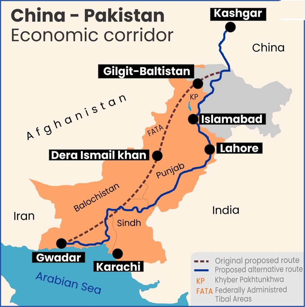 चीन और पाकिस्तान ने बार-बार दावा किया है कि CPEC में कोई सैन्य पहलू नहीं है और यह केवल आर्थिक परियोजना है। हालांकि, भारत ने हमेशा CPEC का विरोध किया है, क्योंकि यह पाकिस्तान अधिकृत जम्मू-कश्मीर से गुजरता है और भारत की संप्रभुता एवं सुरक्षा को प्रभावित करता है।