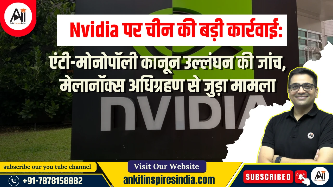 चीन के बाजार नियामक स्टेट एडमिनिस्ट्रेशन फॉर मार्केट रेगुलेशन (SAMR) की प्रारंभिक जांच में पाया गया है कि अमेरिकी चिप दिग्गज Nvidia ने देश के प्रतिस्पर्धा-रोधी कानून (Anti-Monopoly Law) का उल्लंघन किया है। जांच अभी जारी है और नियामक ने यह स्पष्ट नहीं किया है कि कंपनी ने कानून कैसे तोड़ा।
