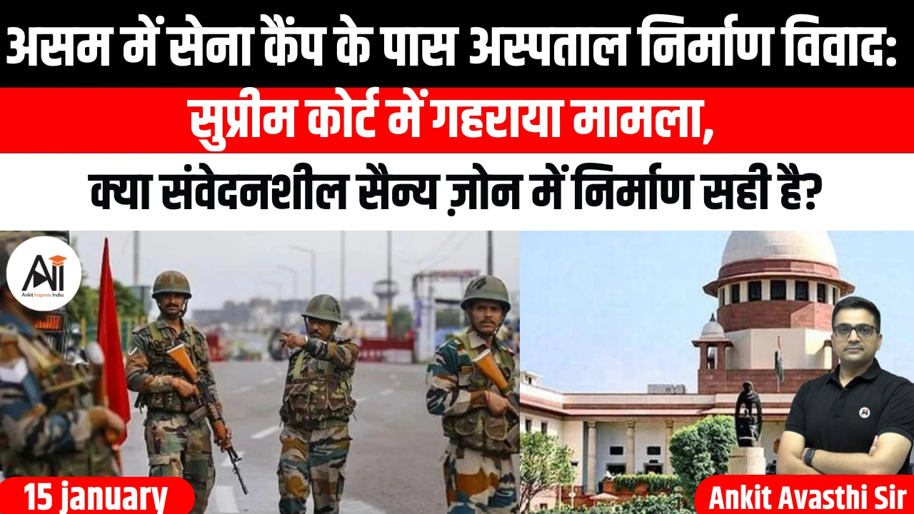 असम के जोरहाट में भारत-बांग्लादेश सीमा के संवेदनशील क्षेत्र में एक सैन्य शिविर के सामने प्रस्तावित मल्टी-स्पेशलिटी अस्पताल का निर्माण सुप्रीम कोर्ट में विवाद का विषय बन गया है। भारतीय सेना ने इसके निर्माण पर आपत्ति जताते हुए “ड्रोन गतिविधि” और “लंबी दूरी की स्नाइपर राइफलों” के इस्तेमाल की आशंका व्यक्त की है।