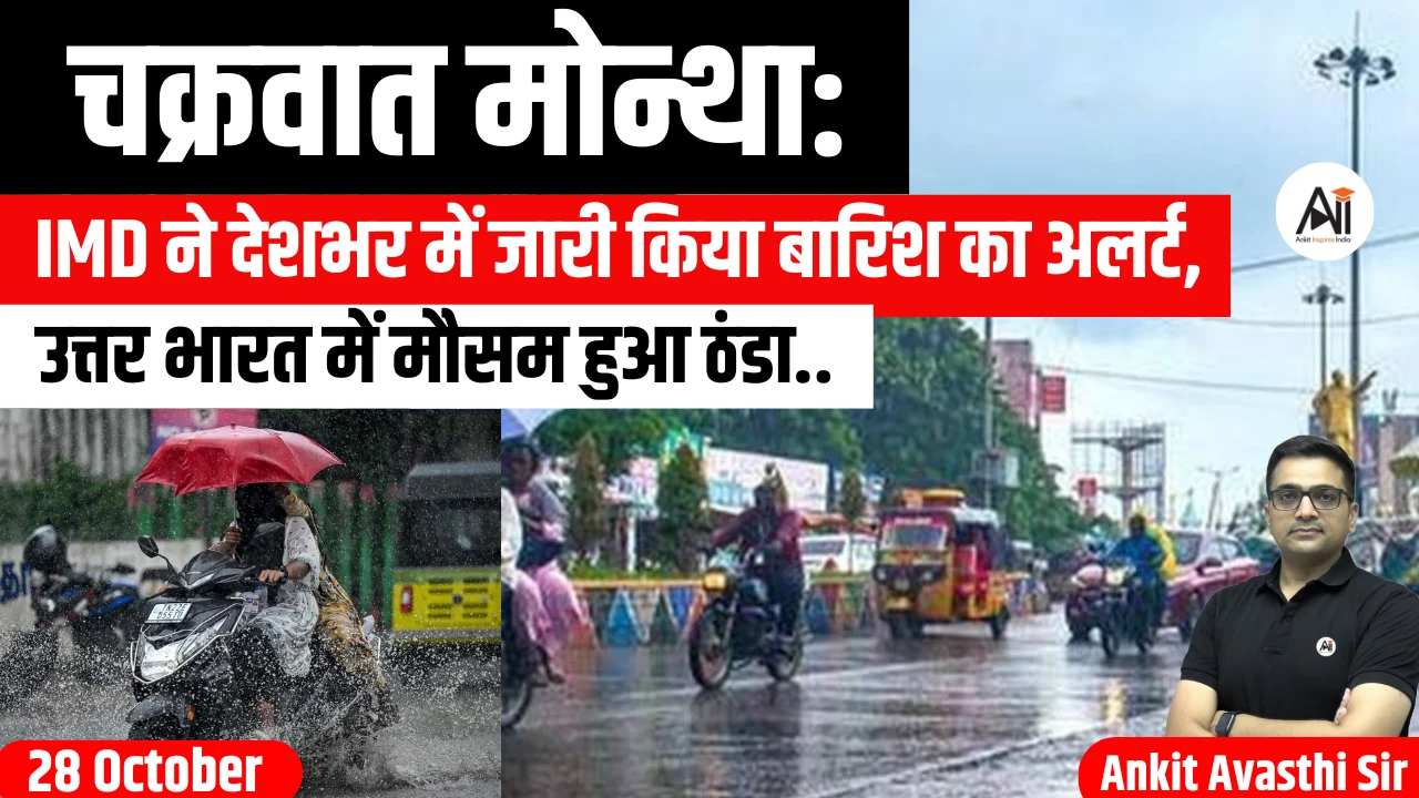 मौसम विभाग (IMD) ने बताया है कि चक्रवात ‘मोन्था’ के तट से टकराने के बाद अगले पाँच दिनों तक केरल, कर्नाटक, तटीय आंध्र प्रदेश और तमिलनाडु में भारी बारिश हो सकती है।
