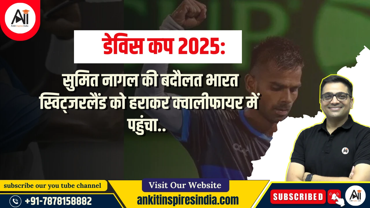 स्विट्जरलैंड जैसी मजबूत टीम को हराकर भारतीय पुरुष टेनिस टीम ने डेविस कप 2025 विश्व ग्रुप I में अपनी ऐतिहासिक जीत दर्ज की है। यह जीत न केवल 2026 क्वालीफायर में भारत की दावेदारी को मजबूत करती है, बल्कि भारतीय टेनिस के आत्मविश्वास और नई ऊंचाइयों की ओर बढ़ते कदमों का प्रतीक भी है।