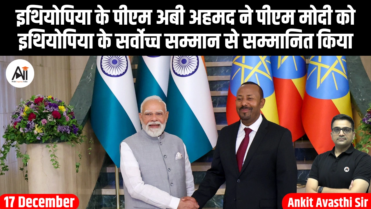 मंगलवार को प्रधानमंत्री मोदी को इथियोपिया के सर्वोच्च नागरिक सम्मान ‘द ग्रेट ऑनर निशान ऑफ इथियोपिया‘ से सम्मानित किया गया। वे यह प्रतिष्ठित सम्मान प्राप्त करने वाले प्रथम वैश्विक नेता बन गए हैं। इस अवसर पर प्रधानमंत्री ने कहा कि यह सम्मान उनके लिए गौरव का विषय है और वे इसे 1.4 अरब भारतीयों की ओर से स्वीकार कर रहे हैं।