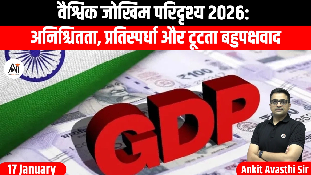 प्रश्न : वैश्विक जोखिम परिदृश्य 2026 बहुपक्षवाद के क्षरण और भू-आर्थिक टकराव के उभार को रेखांकित करता है। इस संदर्भ में वैश्विक शासन पर इसके प्रभावों तथा भारत के लिए निहितार्थों की चर्चा कीजिए।