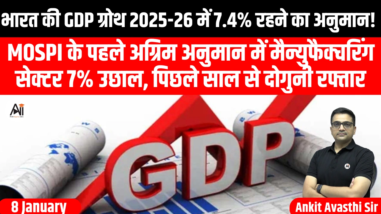 भारत की अर्थव्यवस्था चालू वित्त वर्ष 2025-26 में मजबूत प्रदर्शन करती दिख रही है। सांख्यिकी और कार्यक्रम कार्यान्वयन मंत्रालय (MoSPI) द्वारा जारी पहले अग्रिम अनुमान के अनुसार, देश की वास्तविक (रियल) जीडीपी वृद्धि दर 7.4 प्रतिशत तक पहुंचने का अनुमान है। यह वृद्धि मुख्य रूप से विनिर्माण क्षेत्र में तेज सुधार के कारण देखने को मिल रही है, जहां उत्पादन वृद्धि दर 7 प्रतिशत रहने की संभावना है, जबकि पिछले वर्ष यह 4.5 प्रतिशत थी।