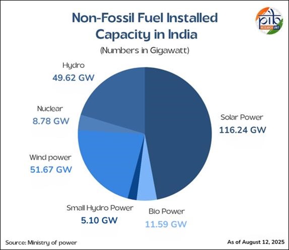 भारत की यह सफलता उस स्पष्ट दृष्टिकोण और निरंतर नीतियों का परिणाम है, जिसके कारण देश ने अपने नवीकरणीय ऊर्जा लक्ष्यों को तय समय से पाँच वर्ष पहले ही हासिल कर लिया। आज भारत की कुल स्थापित बिजली क्षमता का 50% से अधिक हिस्सा गैर-जीवाश्म स्रोतों से आता है।