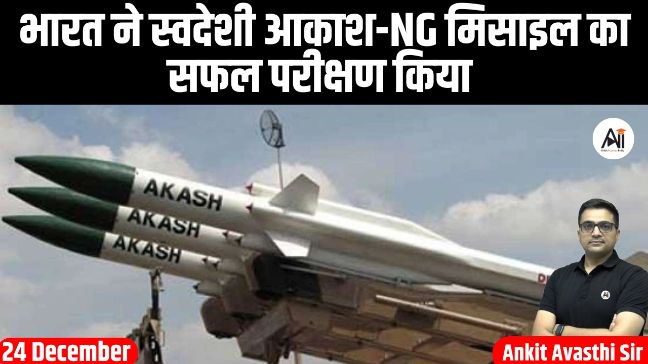 हाल ही में, रक्षा अनुसंधान एवं विकास संगठन (DRDO) ने अगली पीढ़ी की आकाश मिसाइल (आकाश-एनजी) का सफल परीक्षण किया है। परीक्षणों में विभिन्न दूरियों और ऊंचाइयों पर हवाई लक्ष्यों को सटीक रूप से भेदने की क्षमता का प्रदर्शन किया गया, जो उन्नत मिसाइल रक्षा प्रौद्योगिकी में भारत की बढ़ती आत्मनिर्भरता को दर्शाती है।