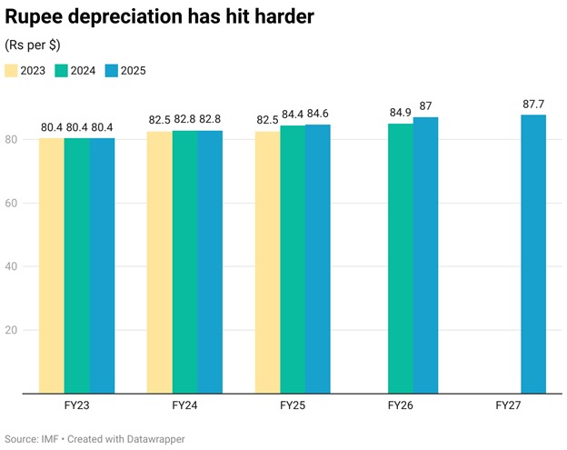 • FY25 में 1 डॉलर = ₹84.6 (पहले था ₹82.5)