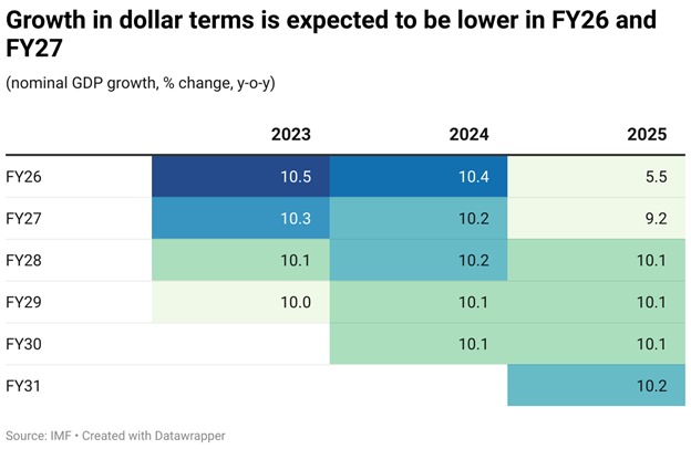 IMF ने रुपये में आंकते हुए Nominal GDP ग्रोथ को भी कम किया है-