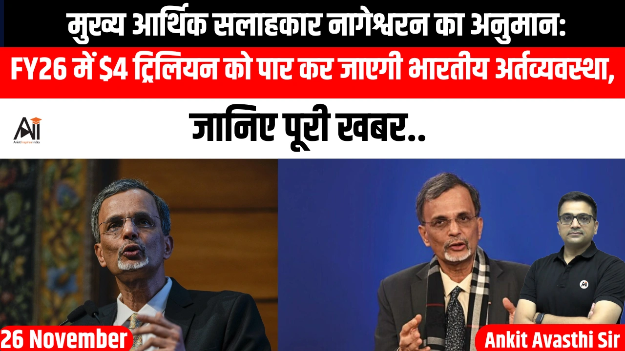 मुख्य आर्थिक सलाहकार वी. अनंत नागेश्वरन ने मंगलवार को IVCA ग्रीन रिटर्नस समिट 2025 में कहा कि देश की अर्थव्यवस्था चालू वित्त वर्ष में 4 ट्रिलियन डॉलर का स्तर पार करने के बेहद करीब है। मार्च 2025 में भारत का सकल घरेलू उत्पाद (GDP) लगभग 3.9 ट्रिलियन डॉलर था, जिसे मौजूदा वित्तीय वर्ष में पार किया जा चुका है। दुनिया की पाँचवीं सबसे बड़ी अर्थव्यवस्था के रूप में भारत के लिए यह उपलब्धि न केवल विकास की गति को दर्शाती है, बल्कि बदलते वैश्विक माहौल में उसकी बढ़ती आर्थिक ताकत का भी संकेत देती है।