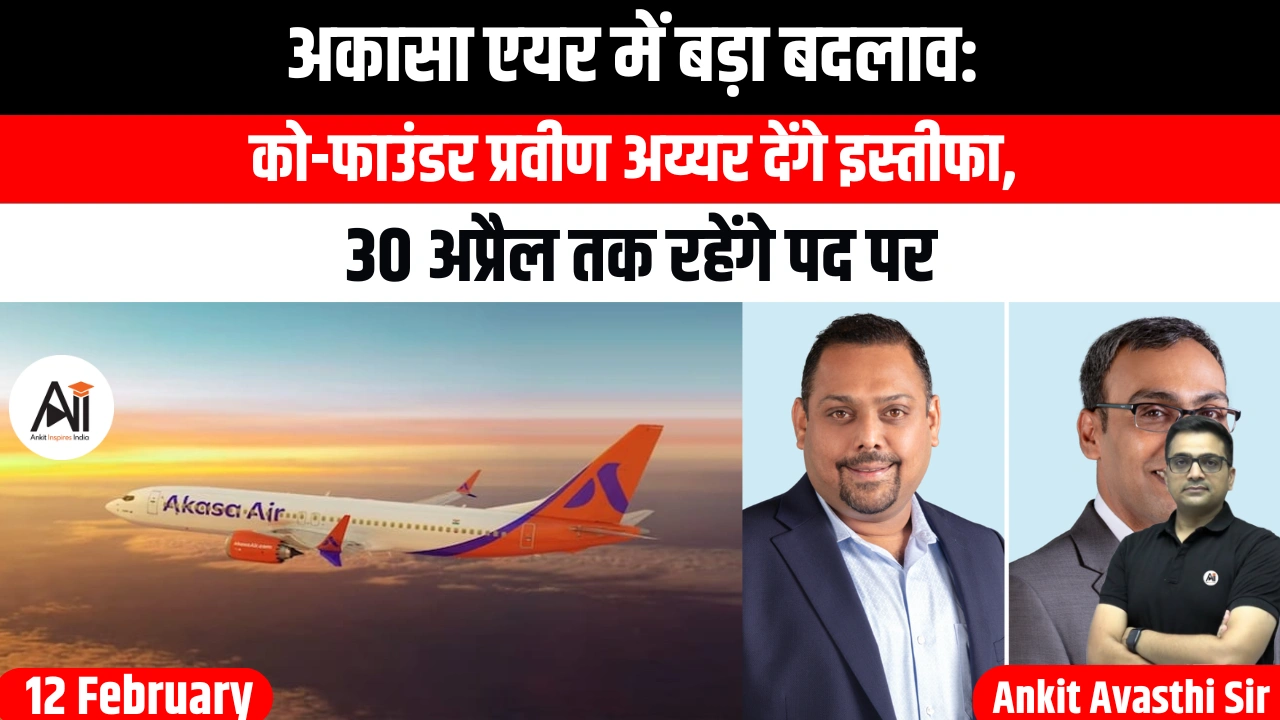 देश की निजी एयरलाइन अकासा एयर में एक अहम नेतृत्व परिवर्तन हुआ है। कंपनी के को-फाउंडर और चीफ कमर्शियल ऑफिसर (CCO) प्रवीण अय्यर ने अपने पद से इस्तीफा देने का फैसला किया है। हालांकि वे तुरंत पद नहीं छोड़ेंगे। कंपनी की ओर से दी गई जानकारी के अनुसार, वे 30 अप्रैल 2026 तक अपनी जिम्मेदारियां निभाते रहेंगे, ताकि नई टीम को काम समझाने और सुचारु रूप से बदलाव करने में मदद मिल सके।
