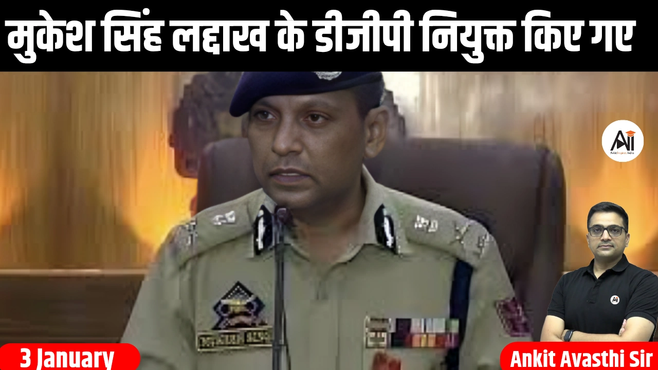 हाल ही में, गृह मंत्रालय (MHA) ने केंद्रीय प्रतिनियुक्ति से स्वदेश वापसी के बाद वरिष्ठ IPS अधिकारी मुकेश सिंह को तत्काल प्रभाव से लद्दाख का नया पुलिस महानिदेशक (डीजीपी) नियुक्त किया है। उन्होंने एस.डी. सिंह जमवाल का स्थान लिया है, जो वर्तमान में अरुणाचल प्रदेश के डीजीपी हैं।
