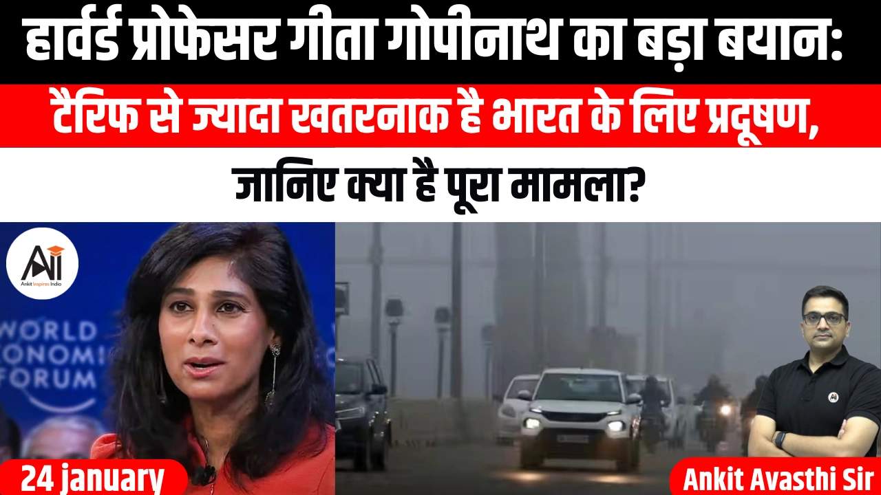 हार्वर्ड विश्वविद्यालय की प्रोफेसर गीता गोपीनाथ ने प्रदूषण को भारत के लिए टैरिफ से भी बड़ा खतरा बताया है। यह बयान उन्होंने बुधवार को वर्ल्ड इकोनॉमिक फोरम 2026 के दौरान दावोस में भारतीय मीडिया से बात करते हुए दिया।