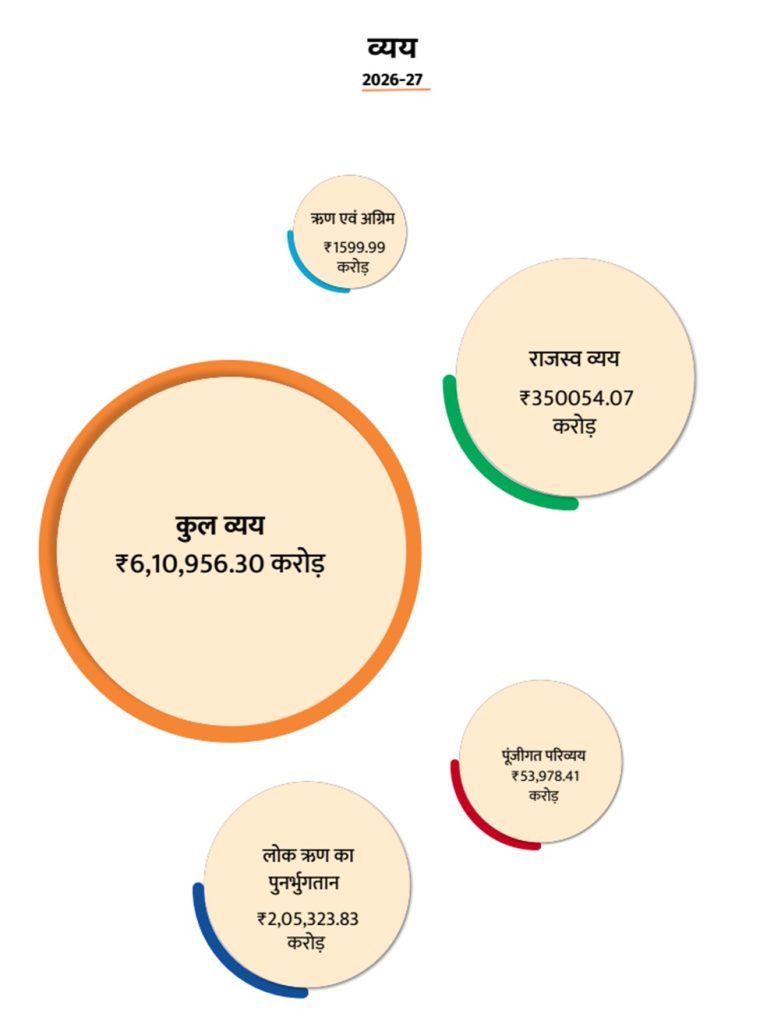 • इस बार 6 लाख 10 हजार 956 करोड़ का बजट पेश किया है। पिछली बार बजट का साइज 5 लाख 58 हजार 596 करोड़ था। इस बार बजट का साइज पिछली बार से 52 हजार 360 करोड़ ज्यादा है।