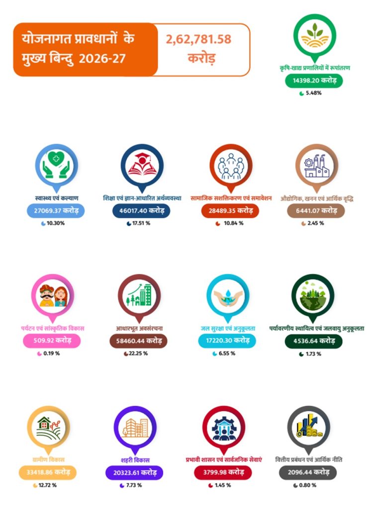 • आर्थिक एवं सांख्यिकी विभाग:₹371.22 करोड़ (पंच गौरव कार्यक्रम हेतु ₹91.18 करोड़ सहित)।
